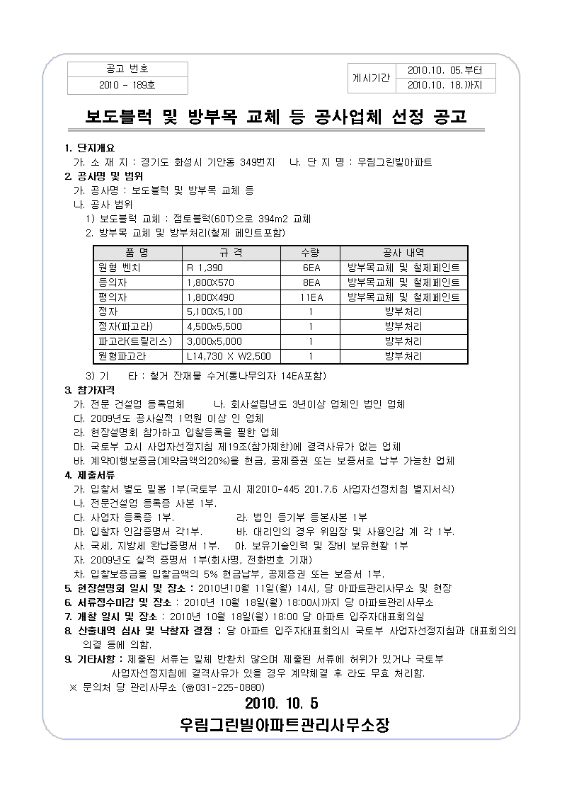 - 보도블럭교체및방부목교체등공사업체선정공고.hwp (32.0K) 6회 다운로드 | DATE : 2010-10-05 15:49:27