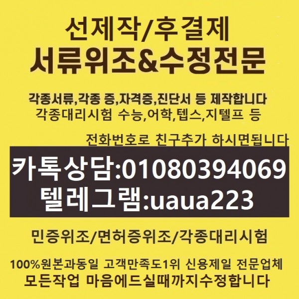 [위조수정]졸업증명서위조★대리시험전문「ㅋㅏ톡상담친추01080394069텔레uaua223」신분증위조#잔액증명서위조#대리시험#수능모의고사성적표위조#외국대학교졸업증명서위조#재학증명서제작 > 입찰공고